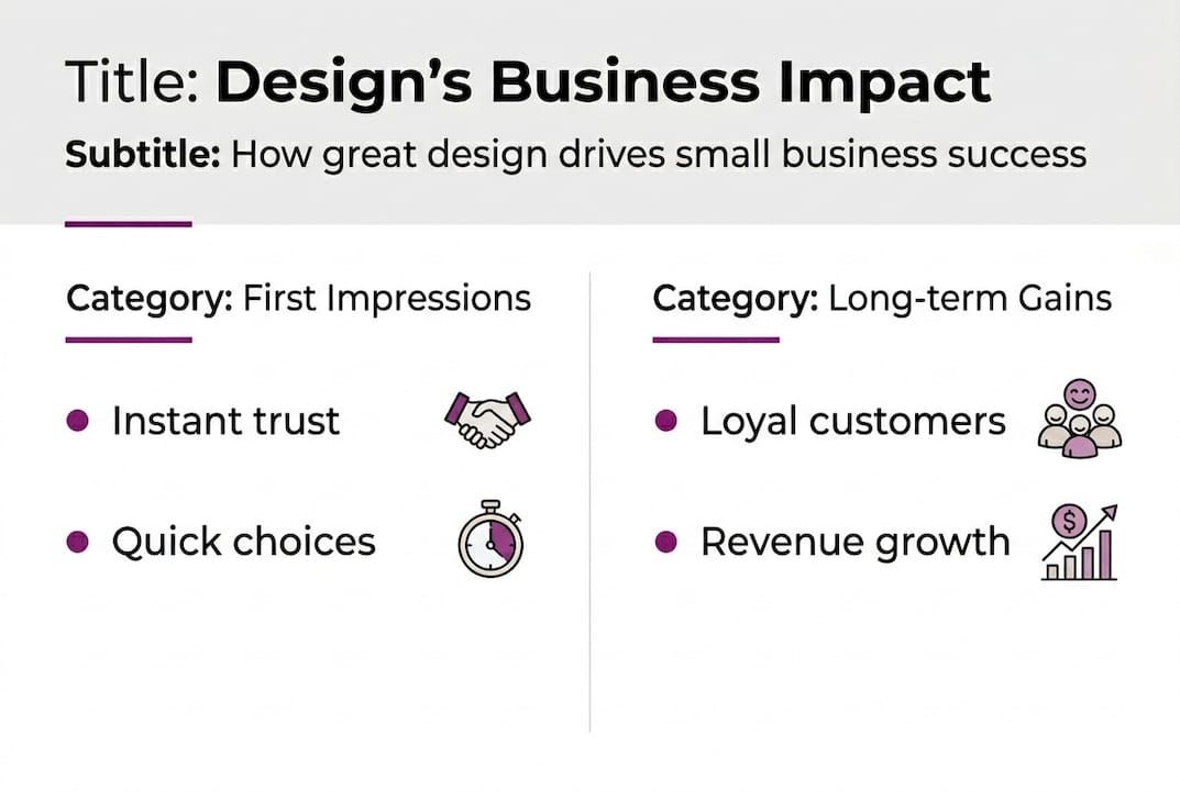 | Design drives business results | Quality design directly influences trust, revenue, and customer loyalty for small businesses. |