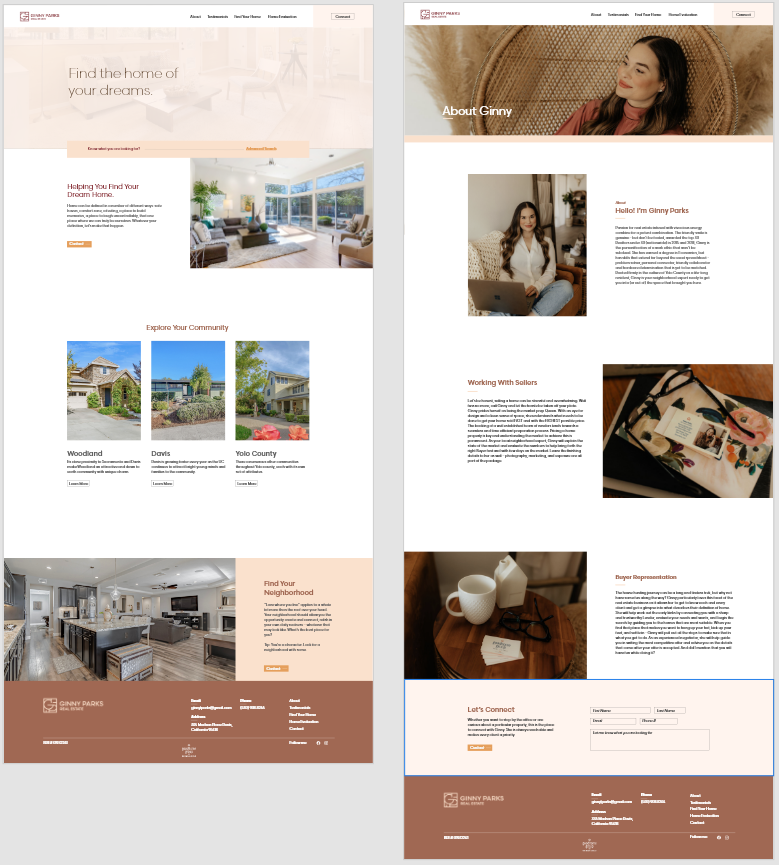 Building upon this strong foundational identity, the second phase of our project centers on the strategic design and development of Ginny Parks' professional website. This crucial digital platform will serve as a dynamic representation of her commitment and expertise as she strives to become a leading Realtor in Yolo County. Our aim is to create a website that transcends mere visual appeal, functioning as a powerful tool for communicating her unique brand narrative, showcasing her comprehensive services, and providing a seamless and engaging user experience. Key considerations in this phase include intuitive navigation, compelling content that highlights her local market knowledge, and clear calls to action that facilitate client engagement.
